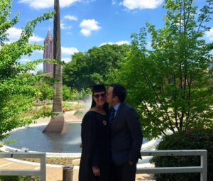 parents collected degrees across the country. Their nomadic lifestyle took the family from Georgia to Oklahoma, Massachusetts to California. On each new campus, Rachel remembers getting involved in university life: like tagging along to class with her mother, coloring on the floor of The University of Oklahoma law library, and participating in family events that earned her junior fan club t-shirts (she was a “junior boomer sooner” and a “junior bulldog”).