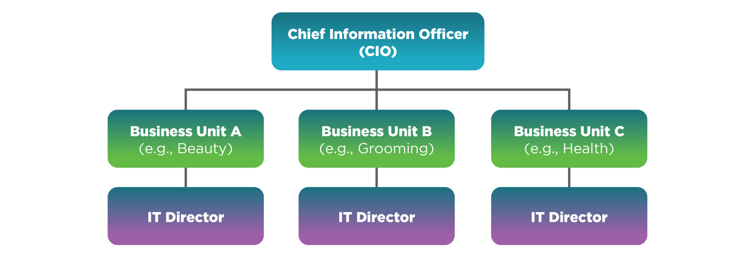 - Each business unit IT director independently oversees infrastructure, applications, and digital services