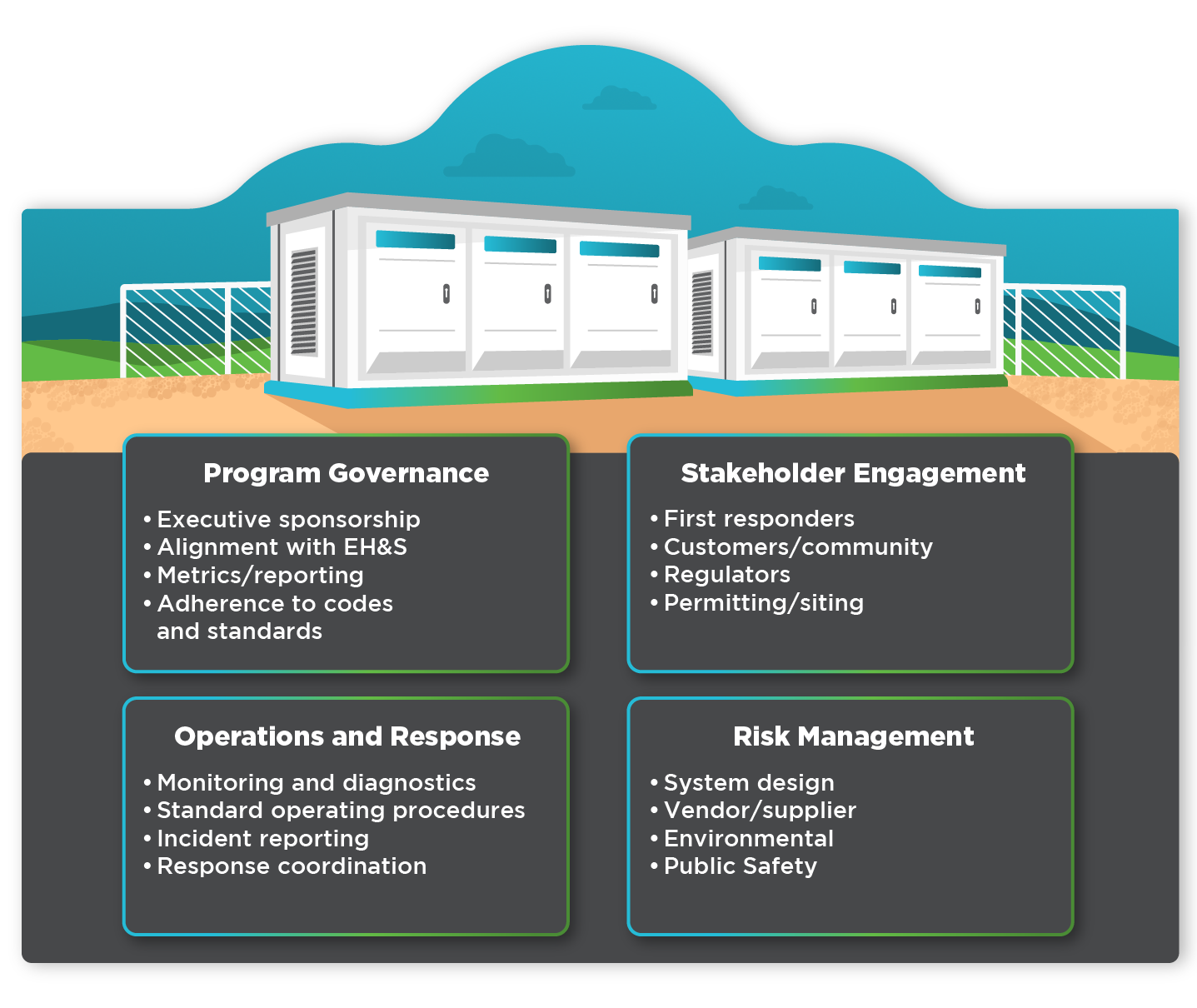 Core components of an effective energy storage safety program include: