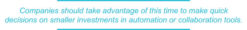 Companies should take advantage of this time to make quick decisions on smaller investments in automation or collaboration tools, says DeMent.