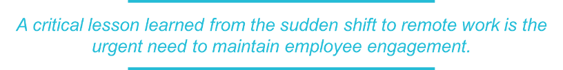 A critical lesson learned from the sudden shift to remote work is the urgent need to maintain employee engagement. The ability to maintain a sense of community and esprit de corps among virtual employees requires different management skills. Without a sense of community, the risk is employees begin to feel like independent contractors instead of being part of something bigger. Determining how to manage virtual employees while building that sense of community is a practice we haven’t had to perform previously. Managing virtual employees represents a new area of skill development for finance leaders, according to Robinson.